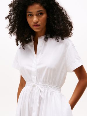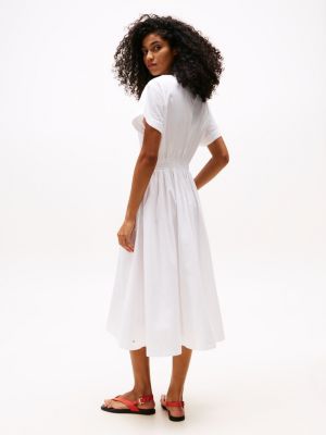 The smocking around the waist of this midi-length dress creates movement in the skirt for a lightweight silhouette.