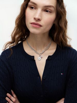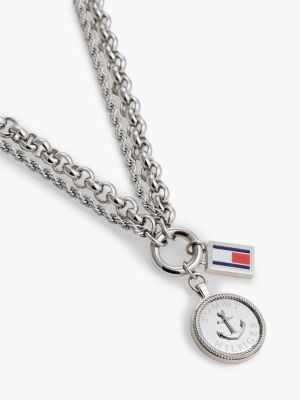 This stainless steel nautical-inspired necklace is crafted with a double chain design that's adorned with two signature charms and anchor detailing.