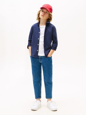 Crafted from a high-quality stretch cotton poplin, this shirt moves comfortably to ensure both freedom and flexibility for active young people. The crisp, semi-spread collar and full button-through front lend a smart, put-together look that transitions smoothly from classroom to weekend outings. Long sleeves with adjustable two-button cuffs offer a tailored touch and a personalised fit, while signature Tommy Hilfiger flag embroidery on the chest adds understated brand appeal. The breathable fabric promotes cool comfort, making this shirt ideal for layering or wearing solo across the seasons. Thoughtful detailing ensures it remains a sharp choice, delivering style backed up by the brand's refined sensibilities.