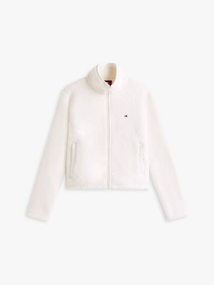 Cosy up in this flag-embroidered zip-thru jacket, featuring a fluffy teddy fleece texture and a high funnel neck.