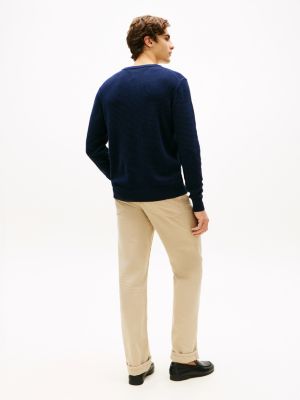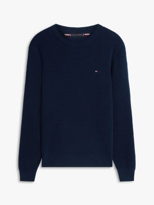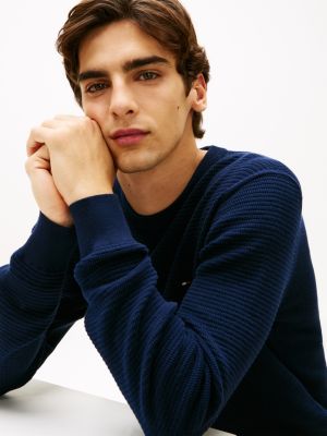 The textured knit on this crew-neck jumper adds intricate detail to a timeless design, with slightly dropped shoulders and discreet flag embroidery.