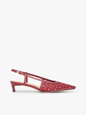 These sophisticated slingbacks feature all-over TH monogram embroidery on the mesh uppers, while kitten heels and pointed toes add feminine touches.