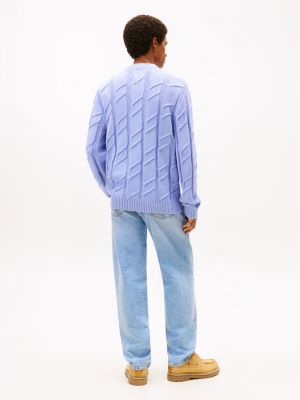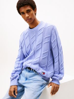 An oversized cable pattern and rib-knit trims add chunky texture to this crew-neck jumper, knitted from pure cotton yarn.