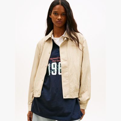 Embrace an athletic aesthetic in this coach jacket, which combines a classic collar and snap-button closure with a modern crinkle texture.