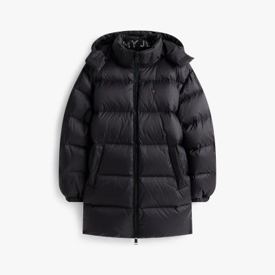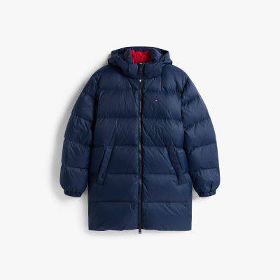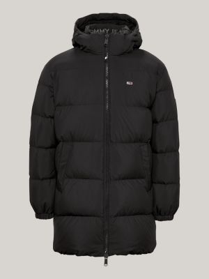 This relaxed-fit parka has a modern padded design filled with insulating down and features a detachable hood for different styling options.